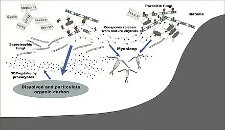 - Gutierrez, MH; Jara, AM; Pantoja, S (2016). "Fungal parasites infect marine diatoms in the upwelling ecosystem of the Humboldt current system off central Chile". Environ Microbiol. 18 (5): 1646–1653. doi:10.1111/1462-2920.13257. hdl:10533/148260. PMID 26914416.