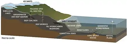 - Anderson, Rika E.; Brazelton, William J.; Baross, John A. (2011). "Is the Genetic Landscape of the Deep Subsurface Biosphere Affected by Viruses?". Frontiers in Microbiology. 2: 219. doi:10.3389/fmicb.2011.00219. PMC 3211056. PMID 22084639.