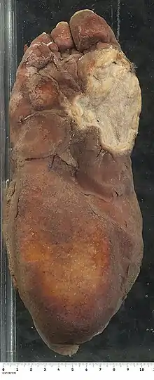 Histologically, the tumour is a well-differentiated squamous cell carcinoma. This carcinoma is aggressive in nature, spreads locally and is associated with a poor prognosis.[7] The cancer has a 18-38% rate of metastasis.[9] 40% occur on the lower limb and the malignant change is usually painless. This malignant change of the wound happens a long time after initial trauma, usually 10–25 years later. Its edge is everted and not always raised. More recent transcriptional analysis suggests that chronically impeded extracellular matrix turnover and epithelium-to-mesenchyme transitions in neglected scar tissue might give rise to this malignancy.[10]