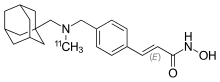 Martinostat is a histone deacetylase inhibitor (HDACi) that is potent against recombinant class I HDACs (isoforms 1-3) and class IIb HDAC (isoform 6) with low nanomolar affinities.[1] In tissue CETSA assays,[2] martinostat exhibits selectivity for class I HDACs (isoforms 1-3).[3] When tagged with the radioisotope carbon-11, martinostat can be used to quantify HDAC in the brain and peripheral organs using positron emission tomography. Martinostat was given a name that adopted the style of other HDAC inhibitors, such as vorinostat, entinostat, and crebinostat, that recognized the academic center in which it was developed, the Martinos Center for Biomedical Imaging.