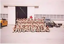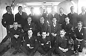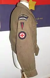In 1903 the Saint John Ambulance Brigade provided staff to create the Royal Navy Auxiliary Sick Berth Reserve (R.N.A.S.B.R.).[6] Initially suggested in 1899,[7] the Lord Commissioners of the Admiralty expressed their desire for the Brigade to provide and auxiliary sick berth reserve for ships at war, hospital ships and naval hospitals at home and abroad. Regulations for this reserve were issued to every Corps division. The Chief Commissioner requested that the officer in charge of every ambulance unit of the Brigade will be good enough to assemble members without delay. The reserve was formed for the purpose of supplementing Sick Berth staff of the Royal Navy in time of national emergency and maritime war only and would be subject to the Naval Discipline act when activated. Volunteers were issued the same uniforms as their regular SBA counterparts, but wore an arm badge indicating that they belonged to the Auxiliary Sick Berth Reserve. There were two grades of ratings, junior and senior Auxiliary Royal Navy Sick Berth Attendants. However they would be able to become Sick Berth Stewards and even reserve Ward masters, if qualified and on a vacancy arising. During peace time they would be required to attend one annual inspection. Special First Aid courses and nursing instruction were provided to the auxiliaries, normally carried out at the nearest Royal Naval Hospital. The auxiliaries would serve with distinction in the Great War at sea, in hospitals, and with the Royal Naval Divisions on land.[8][9][10][11] In world war 2 they again served with honour in Dunkirk,[12] at sea,[12] on the raid at Loften islands,[13] during the withdrawal of Polish Forces from France 1940,[14] the attack on Dieppe,[15] the battle of Crete,[16] the capture of sciliy,[17] and in the Far Eastern theatre of war.[18]