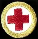The insignia of the Medical Assistant badge is the Red Cross of Geneva on a white background with gold circling. A Royal Crown above the insignia denotes that the rating is qualified at the senior rate level (PO).