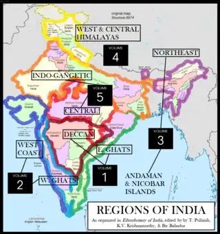 {{cite book}}: CS1 maint: others (link) - "Chapter 2. Ethnic Diversity". Ethnobotany of India. Volume 2, Western Ghats and west coast of peninsular India. T. Pullaiah, Bir Bahadur, K. V. Krishnamurthy. Oakville, ON. 2017. ISBN 978-1-315-36614-2. OCLC 965340581.
