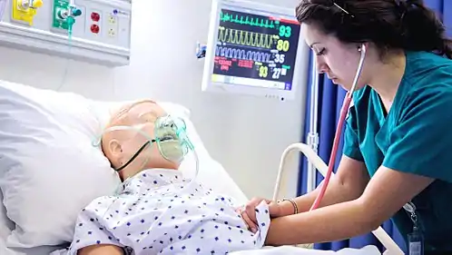 Medical simulation, or more broadly, healthcare simulation, is a branch of simulation related to education and training in medical fields of various industries. Simulations can be held in the classroom, in situational environments, or in spaces built specifically for simulation practice.[1] It can involve simulated human patients (whether artificial, human or a combination of the two), educational documents with detailed simulated animations, casualty assessment in homeland security and military situations, emergency response, and support for virtual health functions with holographic simulation. In the past, its main purpose was to train medical professionals to reduce errors during surgery, prescription, crisis interventions, and general practice. Combined with methods in debriefing, it is now also used to train students in anatomy, physiology, and communication during their schooling.