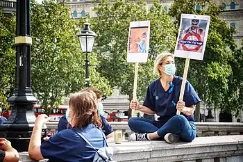 Nurses protesting at the Nurses' Protest at Trafalgar Square, UK on Saturday 12 September 2020