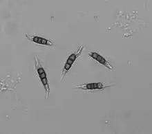 The history of bread-making records deadly ergotism caused by ergot, most commonly Claviceps purpurea, a parasite of cereal crops.[27][28] Psychoactive ergot alkaloid drugs have subsequently been extracted from or synthesised starting from ergot; these include ergotamine, dihydroergotamine, ergometrine, ergocristine, ergocryptine, ergocornine, methysergide, bromocriptine, cabergoline, and pergolide.[27][29]