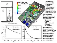 The mixing modeling and design techniques applied to membrane bioreactors are very similar to those used for conventional activated sludge systems. They include the relatively quick and easy compartmental modelling technique which will only derive the residence time distribution of a process (e.g. the reactor) or a process unit (e.g. the membrane filtration vessel) and which relies on broad assumptions of the mixing properties of each sub-unit. Computational fluid dynamics modeling, on the other hand, does not rely on broad assumptions about the mixing characteristics and instead attempts to predict the hydrodynamics from a fundamental level. It is applicable to all scales of fluid flow and can reveal much information about the mixing in a process, ranging from the residence time distribution to the shear profile on a membrane surface. A visualization of such modeling results is shown in the image.