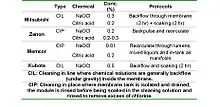 Intensive cleaning may also be carried out when further filtration cannot be sustained because of an elevated transmembrane pressure. Each of the four membrane bioreactor suppliers Kubota, Evoqua, Mitsubishi and GE Water have their own chemical cleaning recipes; these differ mainly in terms of concentration and methods (see Table 1). Under normal conditions, the prevalent cleaning agents are NaOCl (sodium hypochlorite) and citric acid. It is common for membrane bioreactor suppliers to adapt specific protocols for chemical cleanings (i.e. chemical concentrations and cleaning frequencies) for individual facilities.[9]
