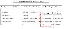 Membrane bioreactor filtration performance inevitably decreases with filtration time due to the deposition of soluble and particulate materials onto and into the membrane, attributable to the interactions between activated sludge components and the membrane. This major drawback and process limitation has been under investigation since the earliest membrane bioreactors and remains one of the most challenging issues facing further development.[16][17]