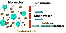 Membrane bioreactors are combinations of some membrane processes like microfiltration or ultrafiltration with a biological wastewater treatment process, the activated sludge process. These technologies are now widely used for municipal and industrial wastewater treatment.[1] The two basic membrane bioreactor configurations are the submerged membrane bioreactor and the side stream membrane bioreactor.[2] In the submerged configuration, the membrane is located inside the biological reactor and submerged in the wastewater, while in a side stream membrane bioreactor, the membrane is located outside the reactor as an additional step after biological treatment.