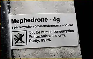 In 2010, as its use became more prevalent, many countries passed legislation prohibiting mephedrone. It became illegal in Croatia[121] and Germany[122] in January, followed by Romania[123] and the Isle of Man in February.[124] In March 2010, it was classified as an unregulated medicine in the Netherlands, making the sale and distribution of it illegal.[125][126] The importation of mephedrone into the UK was banned on 29 March 2010.[127] The next day, the ACMD in the UK published a report on the cathinones, including mephedrone, and recommended they be classified as Class B drugs. On 7 April 2010, the Misuse of Drugs Act 1971 (Amendment) Order 2010 was passed by parliament, making mephedrone and other substituted cathinones, Class B drugs from 16 April 2010.[128][129] Prior to the ban taking effect, mephedrone was not covered by the Misuse of Drugs Act 1971.[65] It was, though, an offence under the Medicines Act to sell it for human consumption, so it was often sold as "plant food" or "bath salts", although it has no use as these products; this, too, was possibly illegal under the Trade Descriptions Act 1968.[18][19][7] In the US, similar descriptions have been used to describe mephedrone, as well as methylenedioxypyrovalerone (MDPV).[130] In May 2010, the Republic of Ireland made mephedrone illegal,[131][132][133] followed by Belgium,[134] Italy,[135] Lithuania,[136] France[137][138] and Norway[139] in June and Russia in July.[140] In August 2010, Austria[141] and Poland[142] made it illegal and China announced it would be illegal as of 1 September 2010.[66] Mephedrone had been reported to be used in Singapore in February 2010,[143] but it was made illegal in November 2010.[144] In December 2010, following the advice of the EMCDDA, mephedrone was made illegal throughout the EU, a move Switzerland also made shortly afterwards.[145][146] Countries which have not already banned it, such as the Netherlands, Greece and Portugal, will need to change legislation to comply with the EU ruling.[146] In Hungary, a government advisory body recommended mephedrone should be made illegal in August 2010, which was followed, making it illegal in January 2011;[147][148] Spain followed in February 2011.[149] Mexico, by decree,[150] outlawed mephedrone as a substance "with low or no therapeutical use which pose a serious threat to public health"[151] in 2014.