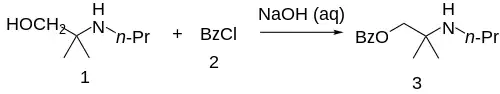 The 2-methyl-2-(propylamino)propan-1-ol [55968-10-0] (1) is treated with base and then with Benzoyl chloride (2), completing the synthesis of Meprycaine (3).