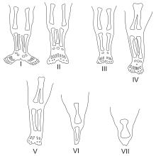 Sirenomelia is classified by the skeletal structure of the lower limb, ranging from class I, where all bones are present and only the soft tissues are fused, to class VII where the only bone present is a fused femur.[1]
