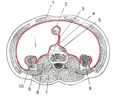 Almost 10 years before Treves, the Austrian anatomist Carl Toldt described the persistence of all portions of the mesocolon into adulthood.[26] Toldt was professor of anatomy in Prague and Vienna; he published his account of the human mesentery in 1879. Toldt identified a fascial plane between the mesocolon and the underlying retroperitoneum, formed by the fusion of the visceral peritoneum of the mesocolon with the parietal peritoneum of the retroperitoneum; this later became known as Toldt's fascia.[26][27]