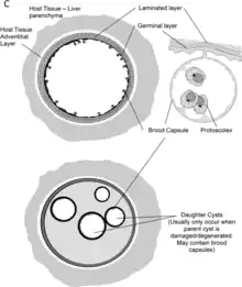 The metacestode of the cestode Echinococcus spp.