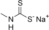 Metam sodium is an organosulfur compound with the formula CH3NHCS2Na. The compound is a sodium salt of a dithiocarbamate. The compound exists as a colorless dihydrate, but most commonly it is encountered as an aqueous solution.[2] It is used as a soil fumigant, pesticide, herbicide, and fungicide. It is one of the most widely used pesticides in the United States, with approximately 60 million pounds used in 2001.[3]