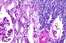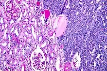 | Micrograph of a metanephric adenoma with structures reminiscent of those seen in papillary renal cell carcinoma. H&E stain. | |