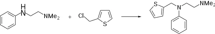 Methaphenilene can be synthesized from N,N-dimethyl-N′-phenylethane-1,2-diamine by alkylation with 2-(chloromethyl)thiophene.[1]