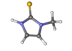 Thiamazole, also known as methimazole, is a medication used to treat hyperthyroidism.[2] This includes Graves disease, toxic multinodular goiter, and thyrotoxic crisis.[2] It is taken by mouth.[2] Full effects may take a few weeks to occur.[3]