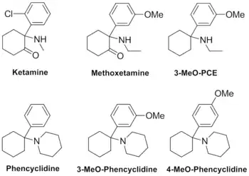 - Roth BL, Gibbons S, Arunotayanun W, Huang XP, Setola V, Treble R, Iversen L (2013). "The ketamine analogue methoxetamine and 3- and 4-methoxy analogues of phencyclidine are high affinity and selective ligands for the glutamate NMDA receptor". PLOS ONE. 8 (3): e59334. Bibcode:2013PLoSO...859334R. doi:10.1371/journal.pone.0059334. PMC 3602154. PMID 23527166.
