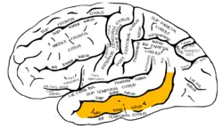 ![]() Right temporal lobe (shown in green). Middle temporal gyrus is visible at the middle of the green area. | |