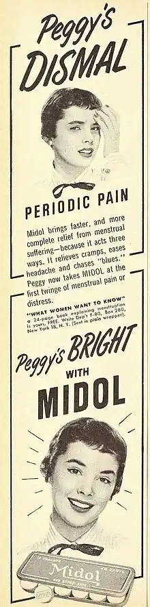 - "Midol ad for Menstrual problems". Archived from the original on 2012-07-08. Retrieved 2010-07-03.