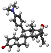Common side effects include abdominal pain, feeling tired, and vaginal bleeding.[4] Serious side effects may include heavy vaginal bleeding, bacterial infection, and birth defects if the pregnancy does not end.[4] If used, appropriate follow-up care needs to be available.[4][8] Mifepristone is an antiprogestogen.[4] It works by blocking the effects of progesterone, making both the cervix and uterine vessels dilate and causing uterine contraction.[4]