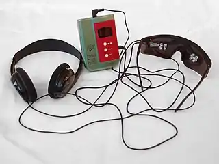 Mind machines typically consist of a control unit, a pair of headphones and/or strobe light goggles. The unit controls the sessions and drives the LEDs in the goggles. Professionally, they are usually referred to as Auditory Visual Stimulation Devices (AVS devices).[11] Also mind machines are offered that can connect to the Internet for updates download of new session material.