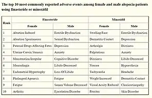 - Wu M, Yu Q, Li Q (December 2016). "Differences in reproductive toxicology between alopecia drugs: an analysis on adverse events among female and male cases". Oncotarget. 7 (50): 82074–82084. doi:10.18632/oncotarget.12617. PMC 5347675. PMID 27738338.