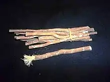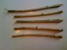 The miswak is a teeth-cleaning twig made from the Salvadora persica tree. The miswak's properties have been described thus: "Apart from their antibacterial activity which may help control the formation and activity of dental plaque, they can be used effectively as a natural toothbrush for teeth cleaning. Such sticks are effective, inexpensive, common, available, and contain many medical properties".[1]