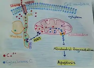 {{cite journal}}: CS1 maint: multiple names: authors list (link) - Van Vliet, Alexander R.; Verfaillie, Tom; Agostinis, Patrizia (2014). "New functions of mitochondria associated membranes in cellular signaling". Biochimica et Biophysica Acta (BBA) - Molecular Cell Research. 1843 (10): 2253–2262. doi:10.1016/j.bbamcr.2014.03.009. PMID 24642268.
