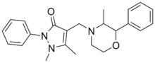 Morazone (Novartrina, Orsimon, Rosimon-Neu, Tarcuzate) is a nonsteroidal anti-inflammatory drug (NSAID), originally developed by the German pharmaceutical company Ravensberg in the 1950s, which is used as an analgesic.[1][2][3] It produces phenmetrazine as a major metabolite and has been reported to have been abused as a recreational drug in the past.[4][5][6][7]