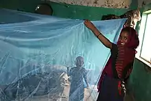 The distribution of mosquito nets or bednets impregnated with insecticides such as permethrin or deltamethrin has been shown to be an extremely effective method of malaria prevention.[3] According to a 2015 Nature study, mosquito nets averted 68% of an estimated 663 million averted cases of malaria infection since 2000.[3] It is also one of the most cost-effective methods of prevention. These nets can often be obtained for around $2.50–$3.50 (2–3 euros) from the United Nations, the World Health Organization (WHO), and others. ITNs have been shown to be the most cost-effective prevention method against malaria and are part of WHO's Millennium Development Goals (MDGs).[24] Generally LLINs are purchased by donor groups and delivered through in-country distribution networks.