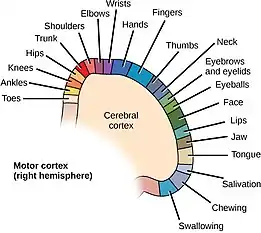 {{cite journal}}: CS1 maint: multiple names: authors list (link) - Meier, J.D., Aflalo, T.N., Kastner, S. and Graziano, M.S.A. (2008). "Complex organization of human primary motor cortex: A high-resolution fMRI study". J. Neurophysiol. 100 (4): 1800–1812. doi:10.1152/jn.90531.2008. PMC 2576195. PMID 18684903.
