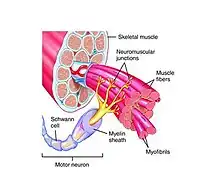 A motor pool consists of all individual motor neurons that innervate a single muscle. Each individual muscle fiber is innervated by only one motor neuron, but one motor neuron may innervate several muscle fibers. This distinction is physiologically significant because the size of a given motor pool determines the activity of the muscle it innervates: for example, muscles responsible for finer movements are innervated by motor pools consisting of higher numbers of individual motor neurons. Motor pools are also distinguished by the different classes of motor neurons that they contain. The size, composition, and anatomical location of each motor pool is tightly controlled by complex developmental pathways.[1]