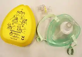 - Mouth-to-mask – Most organisations recommend the use of some sort of barrier between rescuer and patient to reduce cross infection risk. One popular type is the 'pocket mask'. This may be able to provide higher tidal volumes than a Bag Valve Mask.[9]