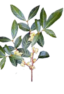 Ptychopetalum is a genus of flowering plants in the family Olacaceae, native to the Amazon rainforest. Indigenous name for the genus include marapuama, muirapuama and mirantã, translating roughly to 'potency wood'.[1][2] The species are shrubs or small trees growing to about 14 feet (4.3 m) in height. Its leaves are short-petioled, up to 3 inches (7.6 cm) in length and 2 inches (5.1 cm) in breadth light green on upper surface, dark brown on lower surface. The inflorescences consist of short axillary racemes of four to six flowers each. The root is strongly tough and fibrous, internally light brown with thin bark and broad wood, has a faint odor, and tastes slightly saline and acrid.[3]