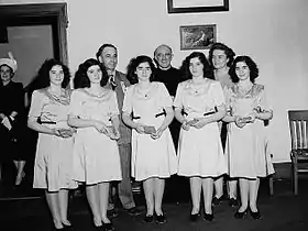 Quintuplets occur naturally in 1 in 55,000,000 births.[18] The first quintuplets known to survive infancy were the identical female Canadian Dionne Quintuplets, born in 1934. Quintuplets are sometimes referred to as "quins" in the UK[19] and "quints" in North America.[20] A famous set of all-girl quintuplets are the Busby quints from the TV series OutDaughtered.