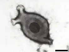 | Electron micrograph of Mycoplasma gallisepticum, scale bar 140 nm | |