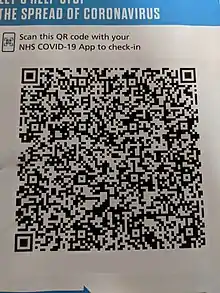 Users of the app can scan a QR code at participating venues. Between 24 September 2020[62] and 18 July 2021 it was mandatory for hospitality, tourism and leisure venues, hairdressers and similar services, and local authority amenities to display a code.[63]