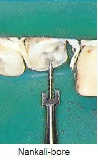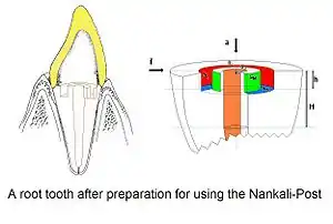 The Nankali post system is a post and cores prosthesis, which is used in prosthodontology and dental restoration. This post and core consists of a single smooth or serrated post and core which has an additional circle ring (counter sink) around it.
