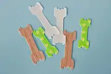 A nasal strip, external nasal dilator strip or nasal dilator strip is a type of adhesive bandage with embedded plastic ribs or splints that is applied across the bridge of the nose and sides of the nostrils, to assist in keeping the airway open. They are believed to make breathing easier and for that reason are used during athletic exertion and as an aid to reduce congestion or to prevent snoring.[1] Various studies have indicated that they do not have a performance-enhancing effect.[2] They are also used by race horse trainers on horses for similar reasons; they are thought to reduce airway resistance and lower the risk of exercise-induced pulmonary hemorrhage (EIPH), plus reduce fatigue and aid post-race recovery.[3]