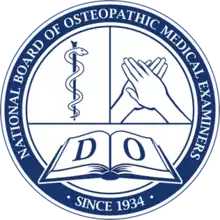 The National Board of Osteopathic Medical Examiners (NBOME), founded in 1934 as the National Osteopathic Board of Examiners for Osteopathic Physicians and Surgeons, Inc.,[1][2] is a United States examination board which sets state recognized examinations for osteopathic medical students and began administering exams in February 1935.[2][3] The NBOME is an independent, not-for-profit organization and is headquartered in Chicago, Illinois and Conshohocken, Pennsylvania.[4] The NBOME states that its mission is "to protect the public by providing the means to assess competencies for osteopathic medicine and related health care professions."[5] The NBOME conducts research to monitor the quality of the COMLEX examinations.[1]