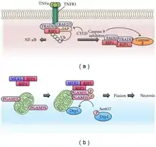 - Vandenabeele P, Galluzzi L, Vanden Berghe T, Kroemer G (October 2010). "Molecular mechanisms of necroptosis: an ordered cellular explosion". Nature Reviews. Molecular Cell Biology. 11 (10): 700–14. doi:10.1038/nrm2970. PMID 20823910. S2CID 7424865.