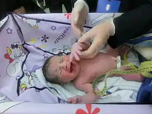 A 30 minutes old infant in Iran. The nurse is providing necessary care after birth.