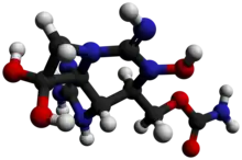 Neosaxitoxin (NSTX) is included, as other saxitoxin-analogs, in a broad group of natural neurotoxic alkaloids, commonly known as the paralytic shellfish toxins (PSTs). The parent compound of PSTs, saxitoxin (STX), is a tricyclic perhydropurine alkaloid, which can be substituted at various positions, leading to more than 30 naturally occurring STX analogues. All of them are related imidazoline guanidinium derivatives.[3]