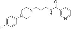 Niaprazine has been shown to metabolize to the compound para-fluorophenylpiperazine (pFPP) in a similar manner to how trazodone and nefazodone metabolize to meta-chlorophenylpiperazine (mCPP).[13][14] It is unclear what role, if any, pFPP plays in the clinical effects of niaprazine.[12] However, from animal studies it is known that pFPP, unlike niaprazine, does not produce sedative effects, and instead exerts a behavioral profile indicative of serotonergic activation.[13]