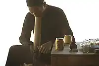 Nicotiana rustica is called mapacho in South America. It is often used for entheogenic purposes by South American shamans,[7] because of its high nicotine content and comparatively high levels of beta-carbolines, including the harmala alkaloids harmane and norharmane.[8] There are many methods of administration in South American ethnobotanical preparations. In a preparation known as singado or singa, N. rustica is allowed to soak or be infused in water, and the water is then insufflated into the stomach. In Peru its known as "Mapacho" and smoked in pipes, the juice is also drunk for its hallucinogenic effects. The plant is also smoked in cigars, used in enemas, and made into a lickable product known as ambil. Finally, N. rustica is a common ingredient in rapé, a smokeless tobacco product usually used as a nasal snuff. Rapé is often a combination of N. rustica and a host of other herbs, depending on the intended use, including tonka beans, cinnamon, clove buds, alkaline ashes[4] (creating nu-nu), Anadenanthera, Erythroxylum, Virola, and more.[9]