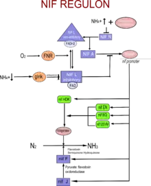 The Nif regulon is a set of seven operons used to regulate nitrogen fixation in the coliform bacterium Klebsiella pneumoniae under anaerobic and microaerophilic conditions.[1] It includes 17 nif genes, and is situated between the his and the Shi-A operon of the bacterium.