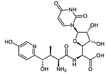 Nikkomycins are a group of antifungal medications.[1] They work by interfering with the building of the fungal cell wall which results in the fungal cell breaking open.[1] They were discovered in 1976.[1] The specific agent nikkomycin Z has weak activity against Aspergillus fumigatus which may be of benefit when used with other medications,[1] such as caspofungin, ranconazole and amphotericin B, fluconazole or itraconazole. Nikkomycin Z also inhibits growth of Batrachochytrium dendrobatidis, a serious fungal pathogen linked to global amphibian declines, while lower concentrations of Nikkomycin Z enhanced natural amphibian antimicrobial skin peptide effectiveness in vitro.[3]